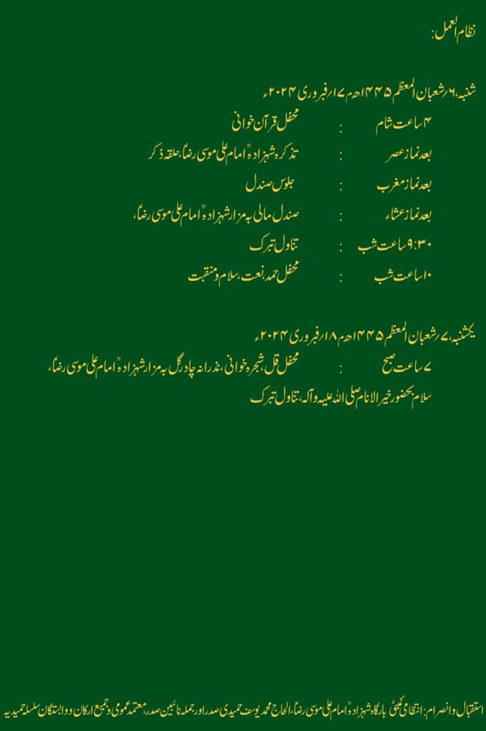 عرس سراپا قدس شہزادہ امام علی ابن موسیٰ رضا علیہ السلام سید السادات ڈاکٹر سید محمد حمید الدین حسینی رضوی قادر ی شرفی رحمۃ اللہ علیہ